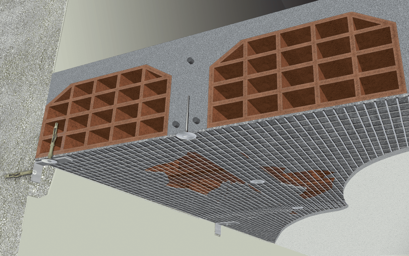 StucaNet is specifically designed for use on badly shattered or fallen slabs because it can be applied without preparing the support.